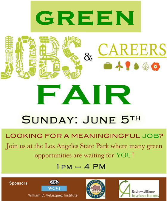 Historic Park. Join us in this effort to reach out to the Latino demographic regarding green possibilities, in this regard, a green career. Sponsored by the William C. Velasquez Institute, World Environment Day has grown to become one of the main vehicles through which the UN stimulates worldwide awareness of the environment and encourages political attention and action. William C. Velasquez Institute is the leading national Latino public policy and research entity that has dedicated at least ten years to the revitalization of the Los Angeles River and the development of the 30-acre Los Angeles State Historic Park (formerly Cornfield rail yard) in Dog Town and the 50-acre Parque del Rio de Los Angeles (formerly known as the Taylor rail yard) in Cypress Park. Our World Environment Day activities will be a free community event for the entire family. It will consist of a Green Careers & Jobs Fair, and a Benefit Concert for the Los Angeles River & Rio